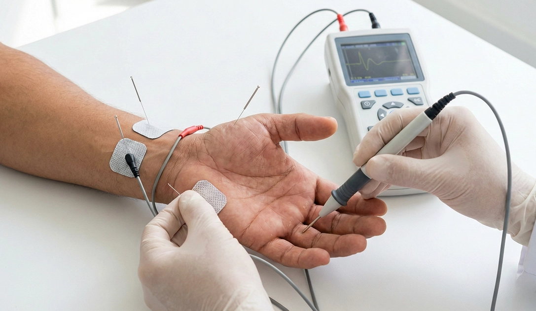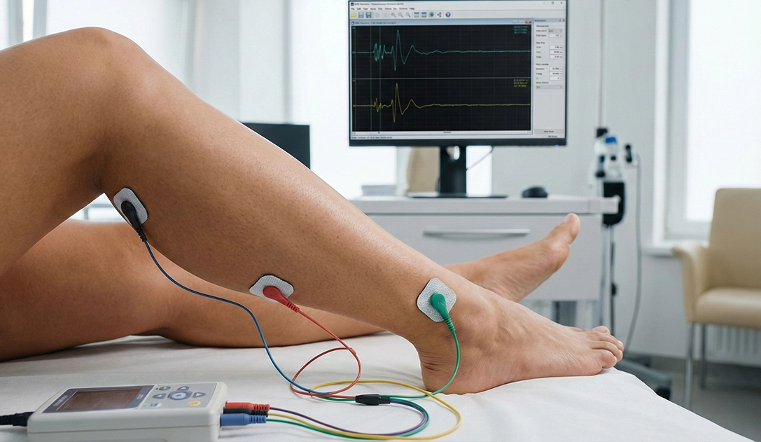 Pruebas y procedimientos Test de Estímulo Repetitivo Evalúa la unión neuromuscular aplicando Saber más +